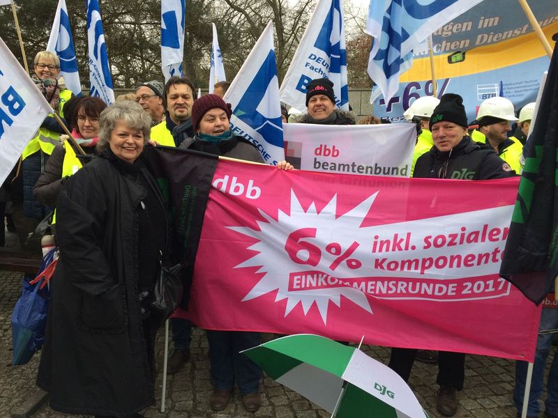 Zur Begrüßung der Verhandlungsführer der am 30.1.2017 in Potsdam begonnenen 2. Verhandlungsrunde waren Vertreter der Deutschen Justizgewerkschaft Brandenburg neben Mitgliedern der Bundesleitung vertreten, hier Seite an Seite mit dem dbb-Landesvorsitzenden.