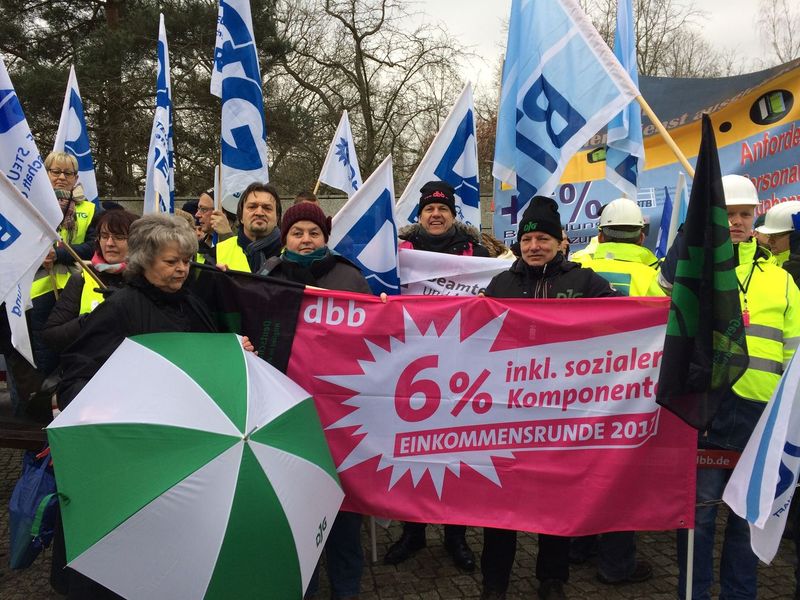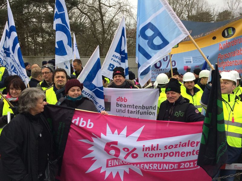 Zur Begrüßung der Verhandlungsführer der am 30.1.2017 in Potsdam begonnenen 2. Verhandlungsrunde waren Vertreter der Deutschen Justizgewerkschaft Brandenburg neben Mitgliedern der Bundesleitung vertreten, hier Seite an Seite mit dem dbb-Landesvorsitzenden.